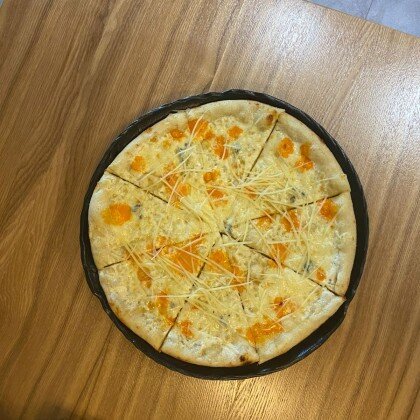 Соус томатный, куриная грудка, копченый сыр, моцарелла, пармезан, микс салат