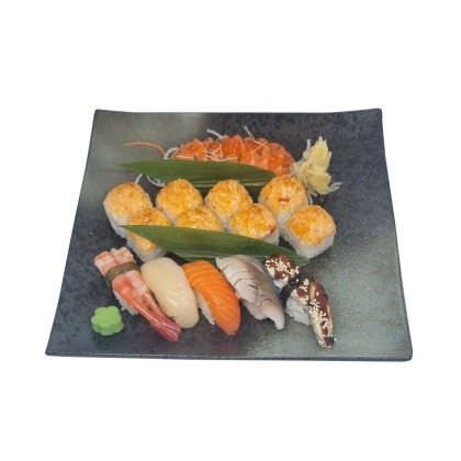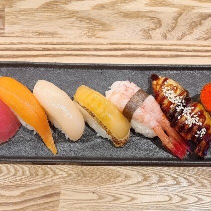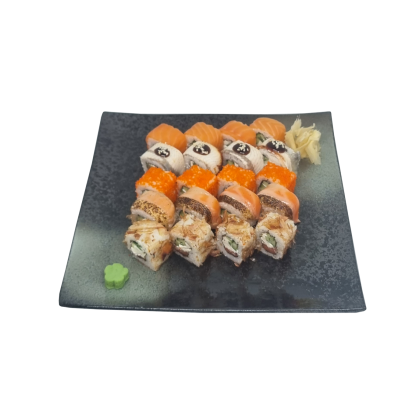 Тунец, гребешок, лосось, угорь, креветка, краб, нори, рис
