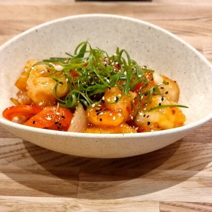 Креветка с овощами в соусе свит-чили
